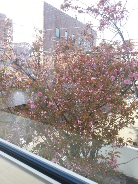 部屋の窓から見える八重桜もかなり咲いてきました(^_^)