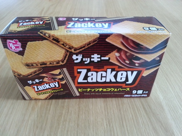 チョコとピーナッツクリームをウエハースで挟んだやつなんだ。美味しいよ〜q(^-^q)